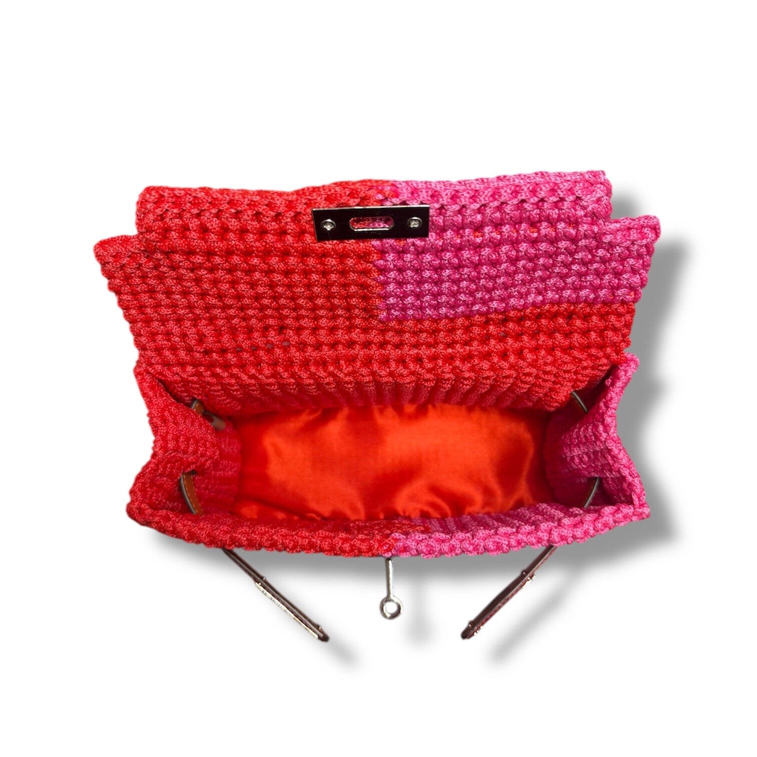 Crochet Top Handle Bag - Pink and Rose Red - Medium